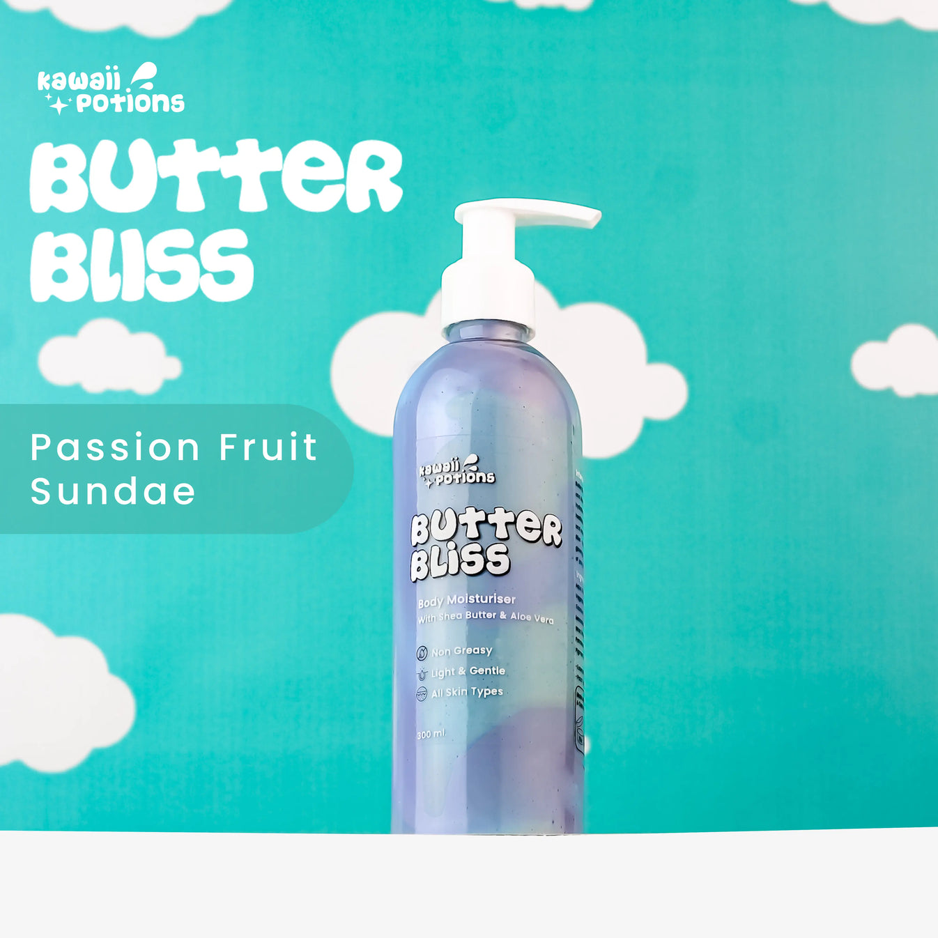 Say goodbye to dryness with Butter Bliss - Passion Fruit Sundae, a Long-Lasting Moisturizer that works better than your everyday lotions. It melts in smoothly, keeps your skin Moisturized & Hydrated for hours, and leaves a Non-Greasy after-feel.